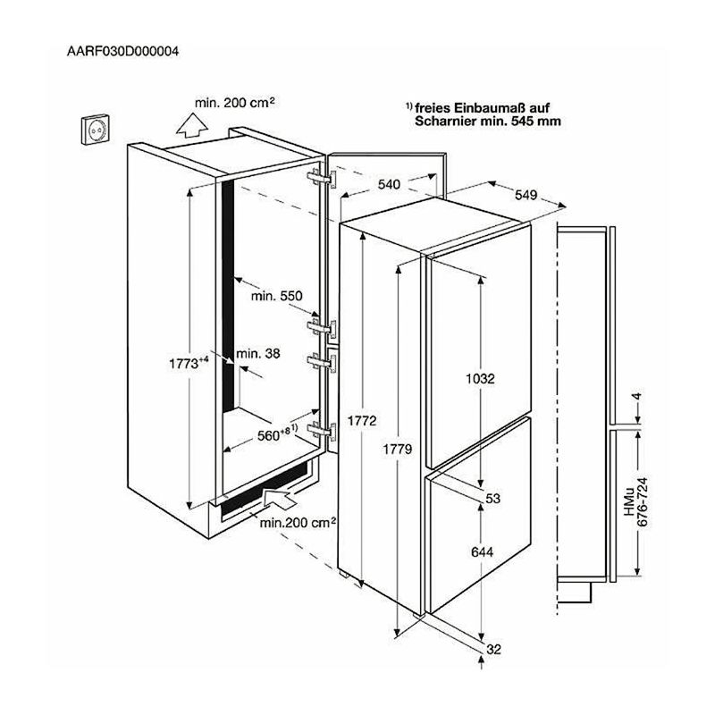 Dimenzije za ugradnju VxŠxD, mm 1780x560x550